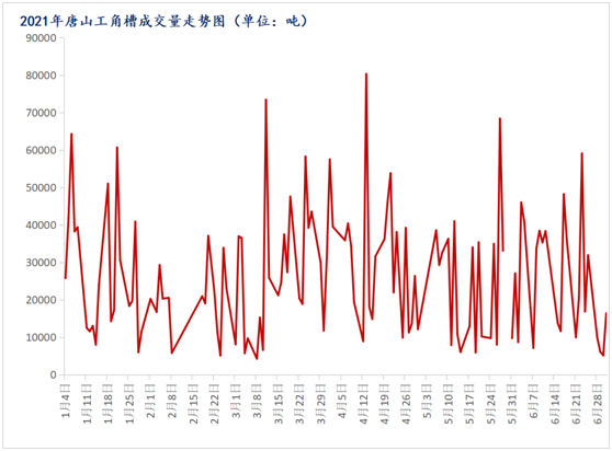 图4:唐山工角槽品种日度成交量走势图 数据来源:钢联数据